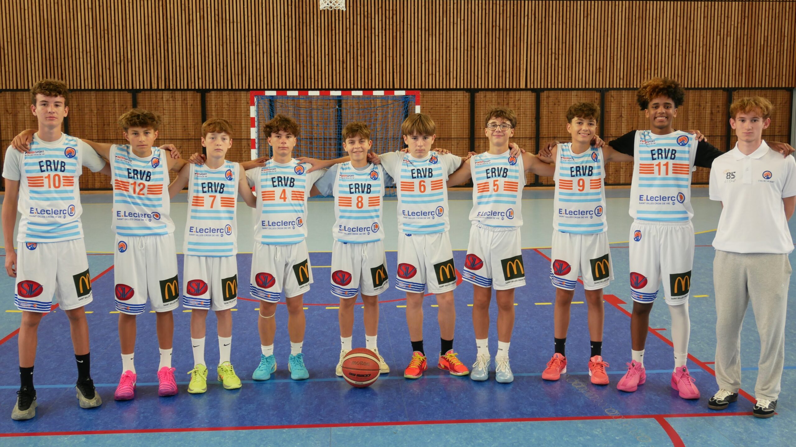 Jean-René MILCENT (coach), Tom CAILLEAU (n°11), Antoine GUIGNARD (n°5), Swann LEDEZ (n°12), Noah YAHAYA (n°7), Ethan PALVADEAU (n°9), Mathieu CUISSET (n°4), Colin PONTOIZEAU (n°8), Jules RIOU (n°10), Vétéa PIET-FARGES (n°6)