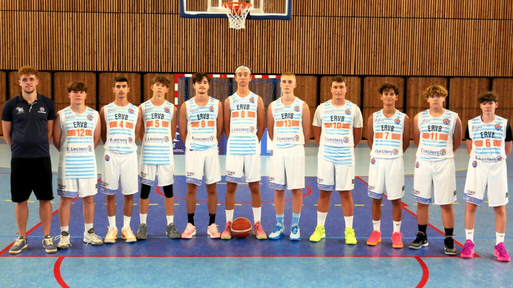 Mathieu TRICHET (coach), Mathis RIVIERE (n°9), Enzo TUZIO (n°13), Maxime RABILLER (n°10), Thomas GARY, Nathan MORIN (n°5), Mathis ABILLARD (n°12), Kevin BORGO (n°11), Nathan JOLLY (n°8), Benjamin SIGURET (n°6), Louis RONDEAU (n°7), Tommy BOURON (n°4), Steeve RONDEAU (assistant)