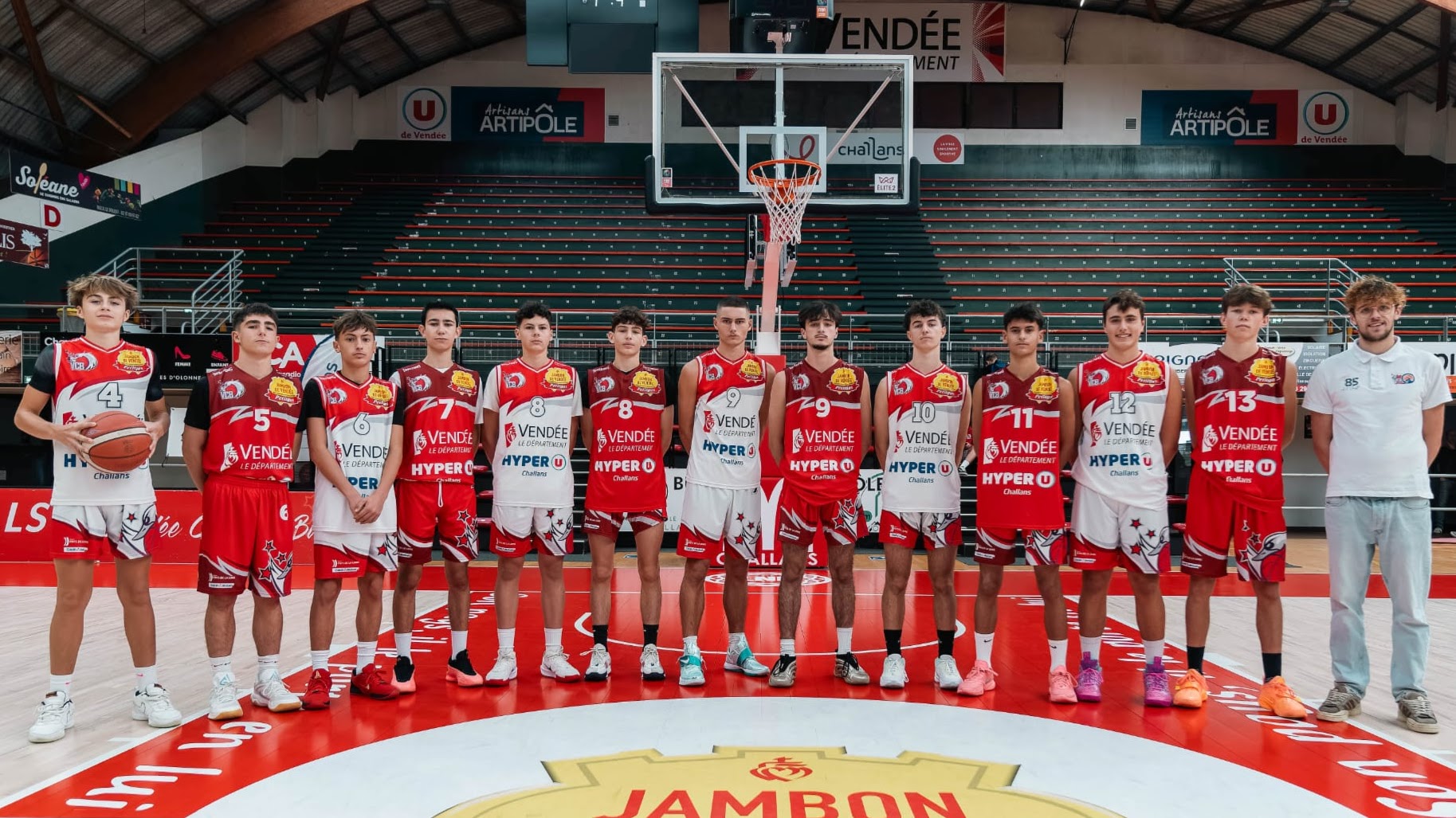 Steeve RONDEAU (assistant), Axel PELLOQUIN (n°9), Robin PEYRAT (n°5), Bryan PALVADEAU (n°12), Nathan JOLLY (n°8), Mathis ARNAUD (n°11), Tom AUDUSSEAU (n°13), Mathis ABILLARD (n°10), Killian RABILLARD (n°7), Louis RONDEAU (n°4), Paul TESSIER (n°6), Mathieu TRICHET (coach)